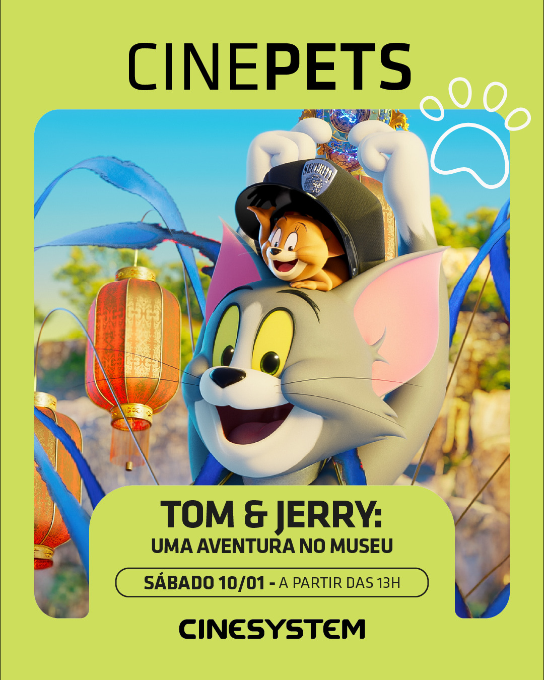 A primeira edição de 2026 acontece neste sábado, 10 de janeiro, com o filme “Tom & Jerry: Uma Aventura no Museu”. Os horários podem ser conferidos em www.cinesystem.com.br.