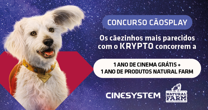 Pensando nisso, a Cinesystem, quinta maior exibidora do país, que proporciona sessões mensais de cinema adaptadas para que cães e humanos possam aproveitar um filme juntos, se uniu à Natural Farm Pet, marca de mastigáveis naturais para cães, em uma missão muito especial: eleger o Cãosplay mais parecido com o Krypto! O tutor vencedor ganhará um ano de cinema grátis, com direito a acompanhante, e um ano de produtos Natural Farm para o pet.