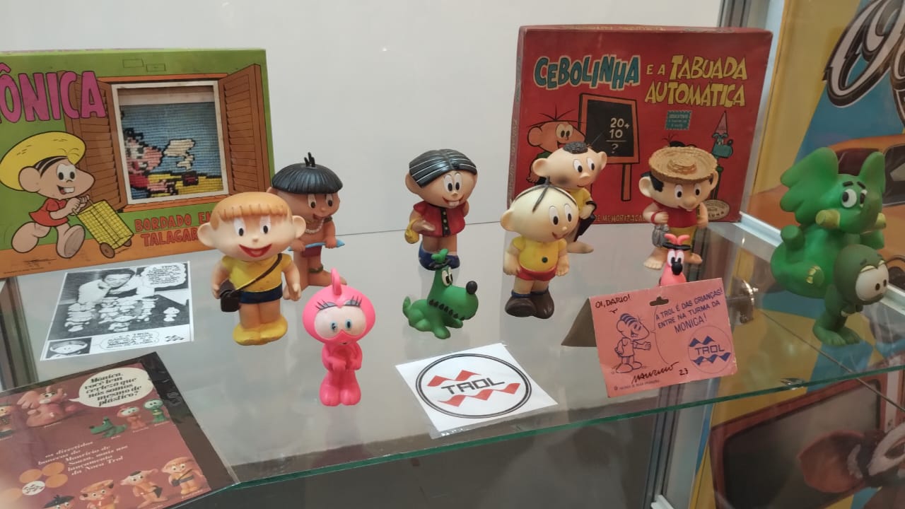 Junto à Arena Retrô também havia uma exposição incrível dos anos 1970, 1980 e 1990. Nela havia brinquedos, jogos – videogames ou não – e outros objetos nostálgicos deste período, em particular da Turma da Mônica, como embalagens da Cica onde figuravam o Jotalhão (o elefante verde criado por Mauricio de Sousa, e garoto propaganda desta marca).