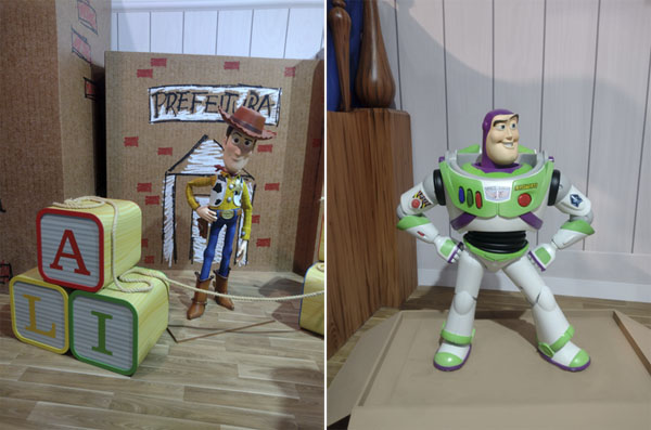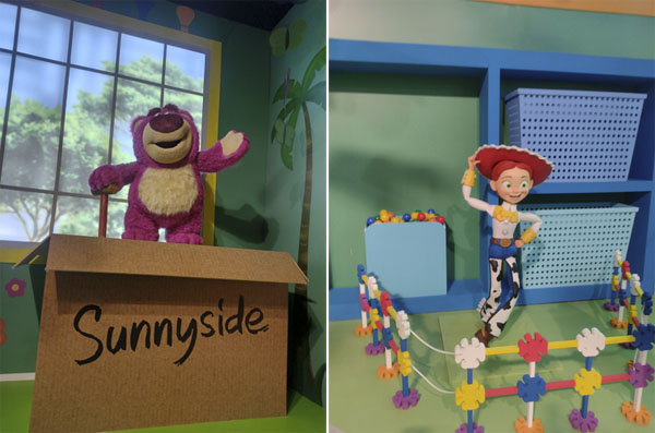 Dois filmes de “Toy Story” são representados: na penúltima sala, o quarto de Andy, visto em “Toy Story” (que recebeu o Oscar de Conquista Especial em 1995), com direito à presença do cowboy Woody e do patrulheiro espacial Buzz Lightyear. Na derradeira sala, vemos o interior da creche Sunnyside (do vencedor dos Oscar de Melhor Animação em 2020, “Toy Story 4”), onde marcam presença o urso Lotso e a cowgirl Jessie.