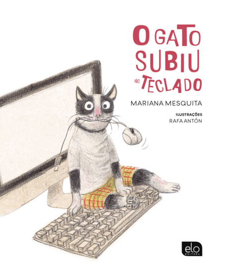 História que celebra o afeto: um gatinho brinca com as teclas do computador e, sem querer, escreve palavras — e “amor” é a primeira delas.