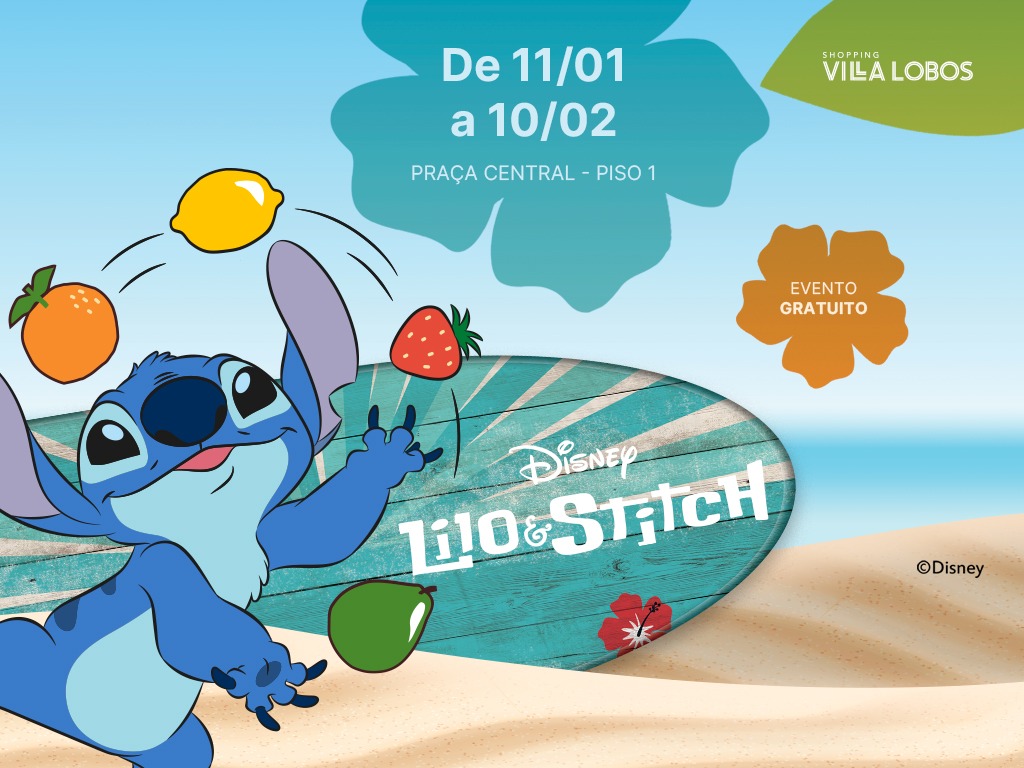 De olho no período de férias escolares, o Shopping Villa Lobos traz a experiência intergalática “Lilo & Stitch”. De 11 de janeiro a 10 de fevereiro, a praça central do shopping se transforma em um cenário do adorado filme da Disney com atividades e brincadeiras para toda a família. E o melhor: é tudo gratuito.