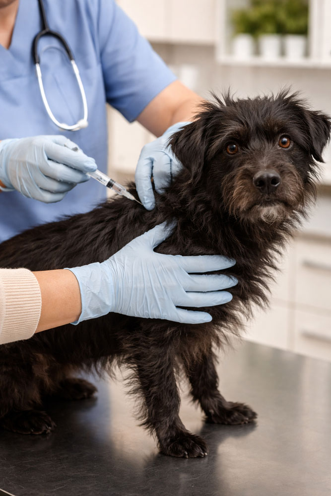 Vacina intranasal: É aplicada nas narinas dos animais, em forma de gotas. A maioria precisa de apenas uma dose inicial e segue com reforços anuais.