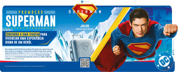 Exclusivamente no Brasil, a WBDGCP lança a Promoção Superman — uma grande ação no varejo que abrange mais de 20 mil pontos de venda. Entre os dias 1º e 31 de julho, quem gastar R$ 50 ou mais em produtos oficiais da DC em lojas participantes receberá um cupom para se cadastrar no site da campanha e concorrer a duas viagens inesquecíveis para os glaciares da Patagônia.