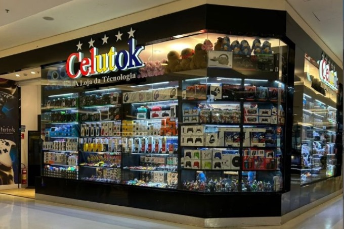 No mesmo piso, a loja Celutok reabre com novo layout, mantendo o amplo portfólio de produtos de tecnologia e eletrônicos, além de condições comerciais atrativas.