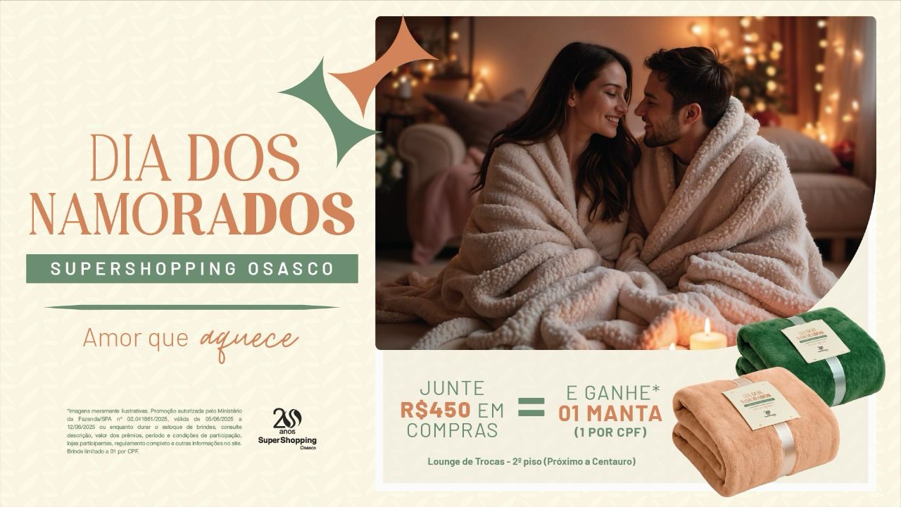 “Queremos transformar o Dia dos Namorados em uma lembrança ainda mais especial para nossos clientes. Pensamos em um presente exclusivo, cheio de significado: uma manta que representa carinho e aconchego e pode acompanhar a família em muitos momentos”, afirma Karina Aono, coordenadora de Marketing do SuperShopping Osasco.