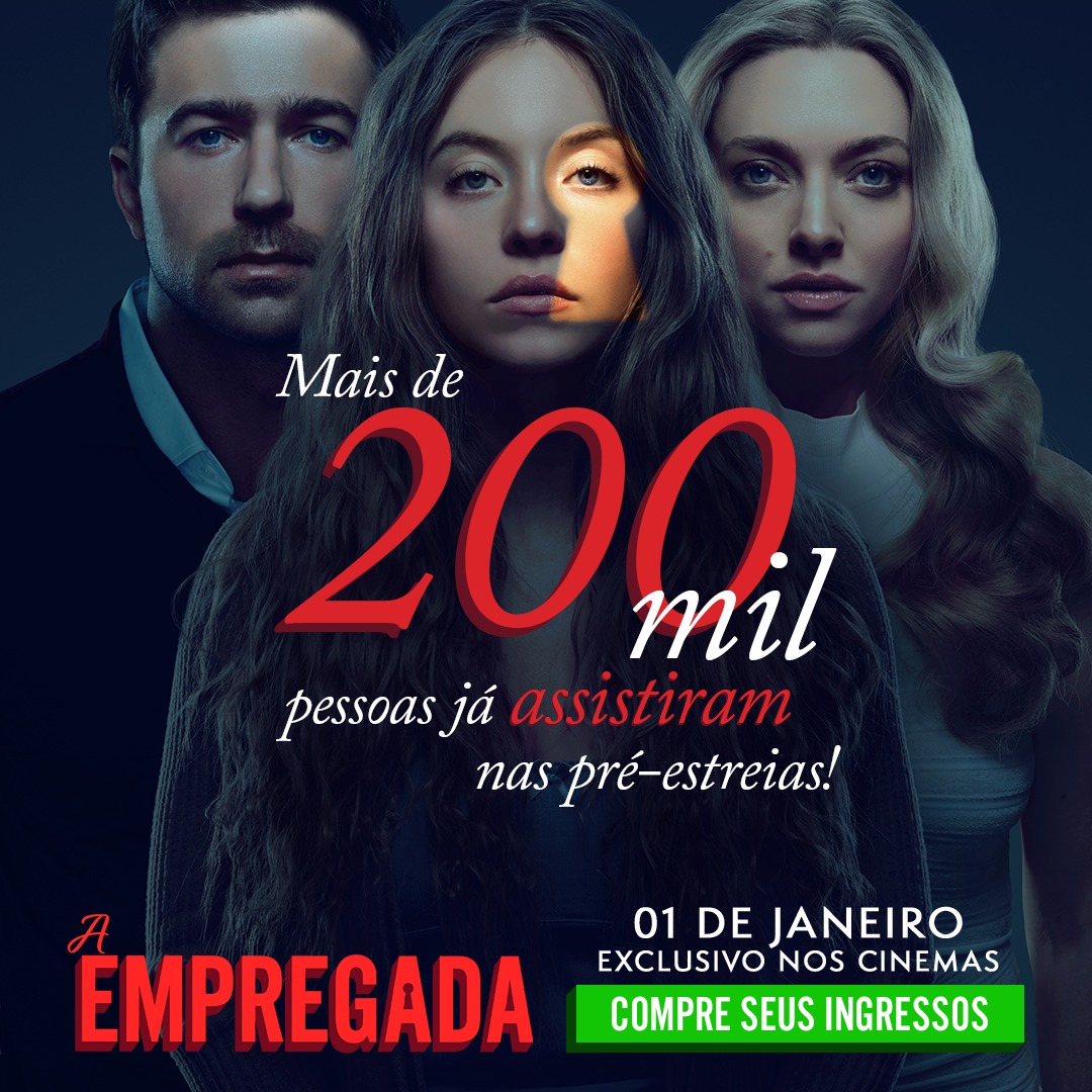 Com exibições limitadas a apenas uma sessão diária, realizadas entre os dias 19 e 21 e de 25 a 31 de dezembro, o longa “A Empregada” (The Housemaid), distribuído pela Paris Filmes, já ultrapassou a marca de 200 mil espectadores nos cinemas brasileiros.